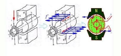 載流的轉(zhuǎn)子(即電樞)導(dǎo)體將受到電磁力f的作用f=Blia(左手定則)