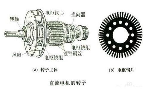 轉(zhuǎn)子部分的電樞鐵芯是主磁路的組成部分,電樞繞組由一定數(shù)目的電樞線圈按照一定的規(guī)律鏈接組成,是直流電機(jī)的電路部分,產(chǎn)生感生電動(dòng)勢(shì),進(jìn)行機(jī)電能量的轉(zhuǎn)換。而換向器主在直流發(fā)電機(jī)中主要起整流的作用,而在電動(dòng)機(jī)中起的是逆變作用。