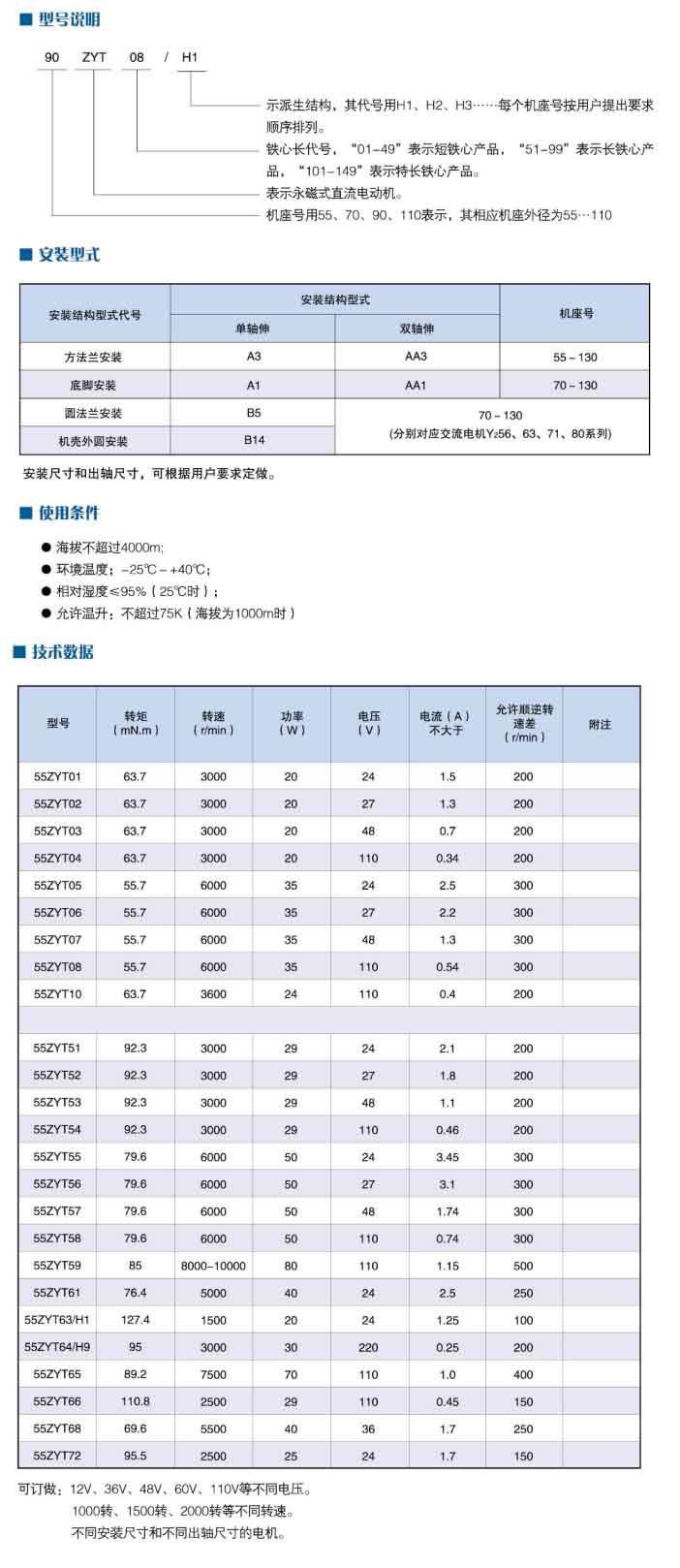 直流電機采用鐵氧磁鐵激磁,系封閉自冷式。作為小功率直流電動機,可在各種裝置中用作驅動元件。